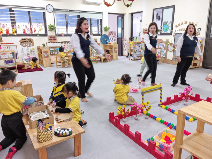 Sau khi dự các hoạt động giáo dục, đoàn đã thăm quan cơ sở vật chất, môi trường giáo dục của nhà trường bao gồm: Các lớp học, các phòng chức năng của cô và trẻ: phòng Thư viện, Thể chất, Máy tính & chiếu phim, Steam, Tạo hình, nhà bếp, nhà ăn của CB - GV - NV tại tầng 5 của trường.