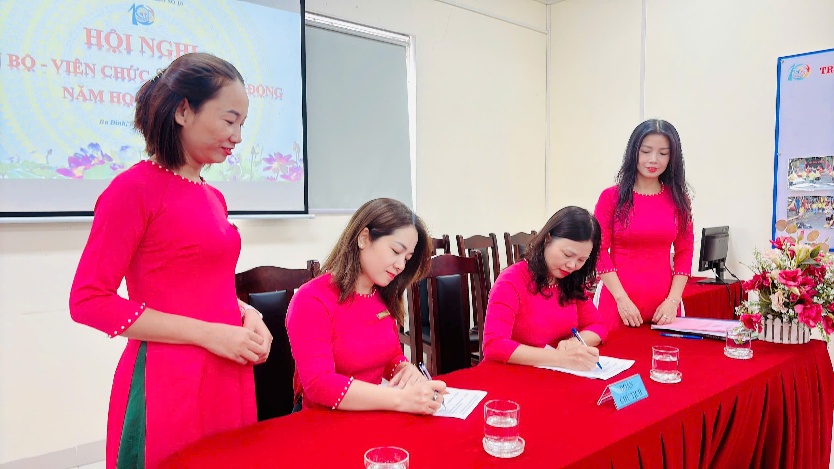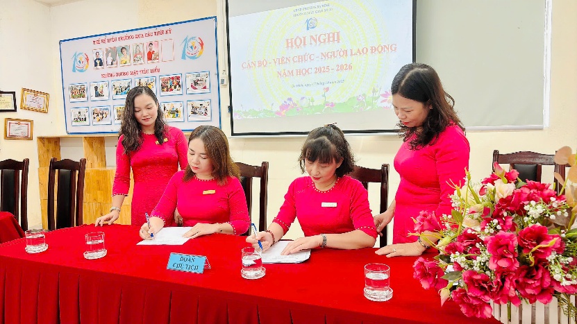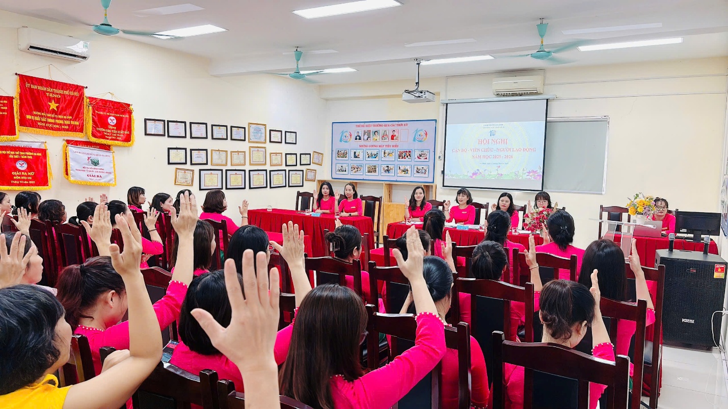 Tiếp đó, hội nghị đã thông qua một số nội dung điều chỉnh, bổ sung quy chế dân chủ và quy chế chi tiêu nội bộ, đồng thời phát động và ký giao ước thi đua năm học 2025–2026 giữa lãnh đạo và tập thể cán bộ, viên chức, người lao động – thể hiện tinh thần đoàn kết, quyết tâm hoàn thành xuất sắc nhiệm vụ năm học.